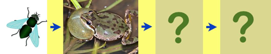 A food chain shows how each living thing gets food, and how nutrients and energy passes on from creature to creature, or from environment to creature. Below is a basic example of a food chain.