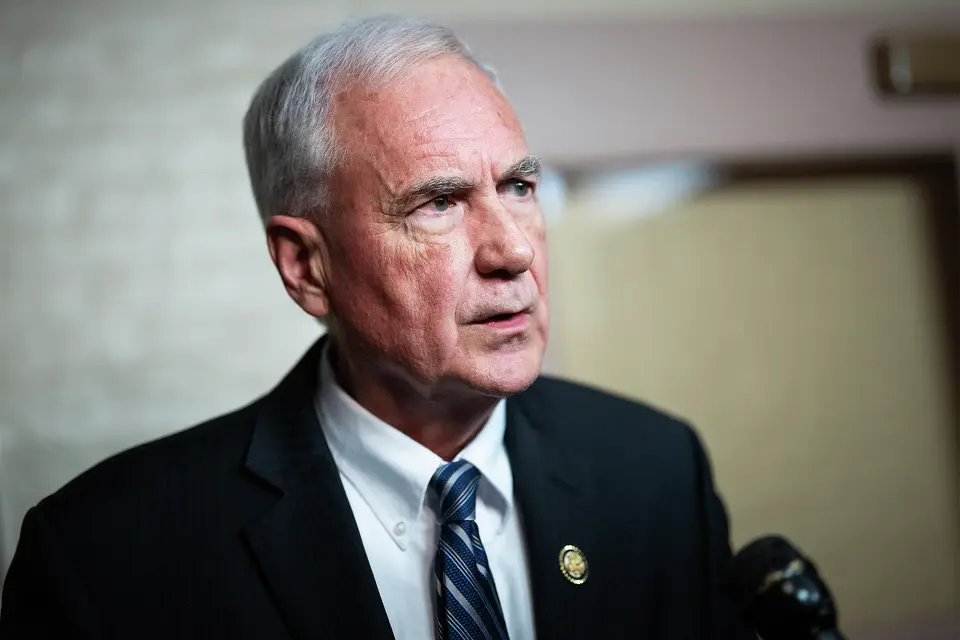 El representante Tom McClintock, republicano de California, habla con periodistas fuera de una reunión de la Conferencia Republicana de la Cámara en el Capitolio de EE. UU. el martes 10 de febrero de 2026. Tom Williams/Getty Imag