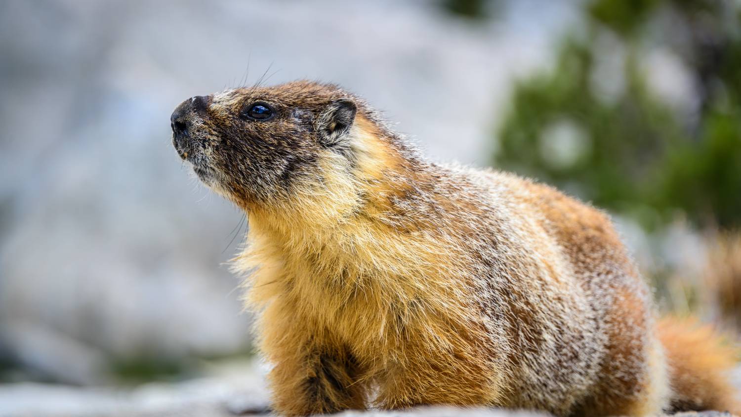 La marmota de vientre amarillo se parece a un woodchuck (marmota americana) y es el roedor nativo más grande de la Sierra Nevada. Pesa alrededor de cinco libras. Estos roedores se pueden encontrar en las elevaciones más altas de Yosemite, y a menudo se pueden ver sentados en las rocas y tomando el sol.