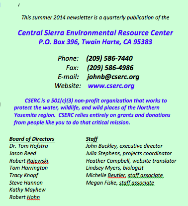 Just over the past week, members of CSERC’s staff have watched an adult bald eagle swing low over Tuolumne Meadows, an osprey fly past while we were removing invasive weeds in the forest near the Clark Fork River, and a goshawk snatch a squirrel from a tree near Twain Harte. We invite you to send us your own observations or photos of raptors by e-mail. We’ll share them on a new “Raptor Observations” page on our CSERC website.